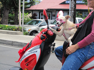 On our way to Lahaina to pick up a frisbee for Kyle (it wouldn't be right if he couldn't play frisbee on the beach!) we saw this lady riding with her dog on her moped. We thought it was so hilarious we had to share.